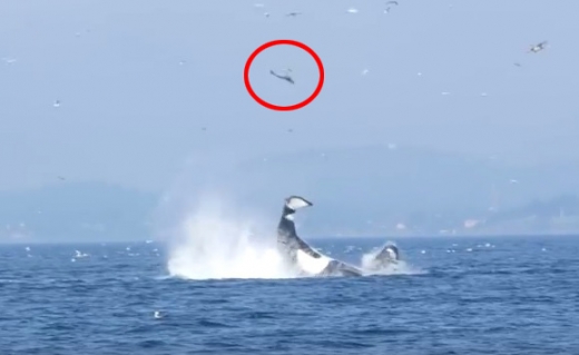25m위로 ‘부~웅’…꼬리치기로 먹이 잡는 범고래 포착